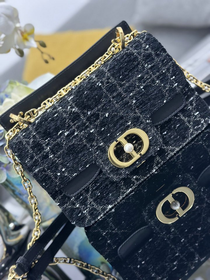 💰 Top original ❤️❤️Dior Jolie Top Handle handbag combines elegance and practicality. Crafted from materials such as black rattan check tweed. Double flap design, decorated with white lacquered aluminum beaded CD logo, three compartments and a zipper pocket under the flap, convenient for storing various daily necessities. Small style, with a detachable top handle and a detachable chain shoulder strap, the shoulder strap is composed of a leather strap and a CD logo chain link, decorated with white resin beads, which can be comfortably carried by hand, on the shoulder or crossbody. Size: 22 x 14 x 8 cm