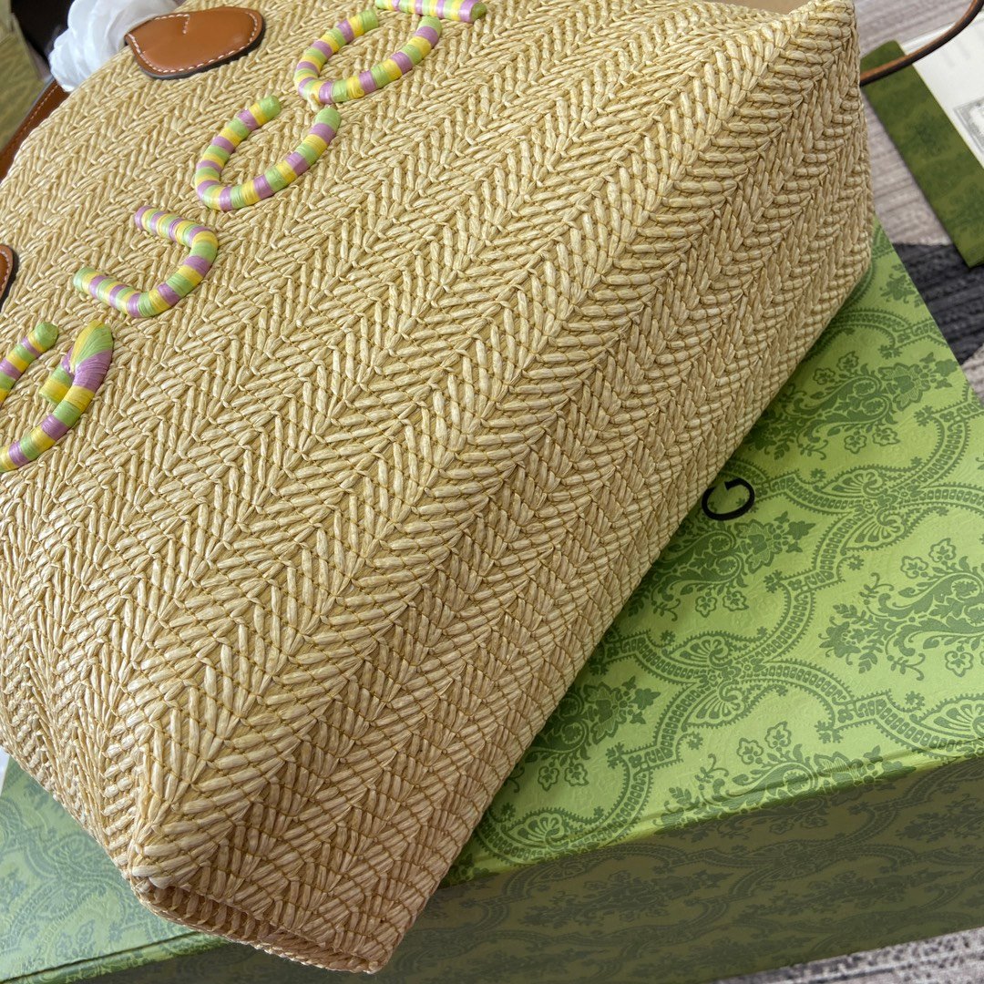 Gucci STRAW-EFFECT TOTE in brown and Multicolor straw Gucci patch